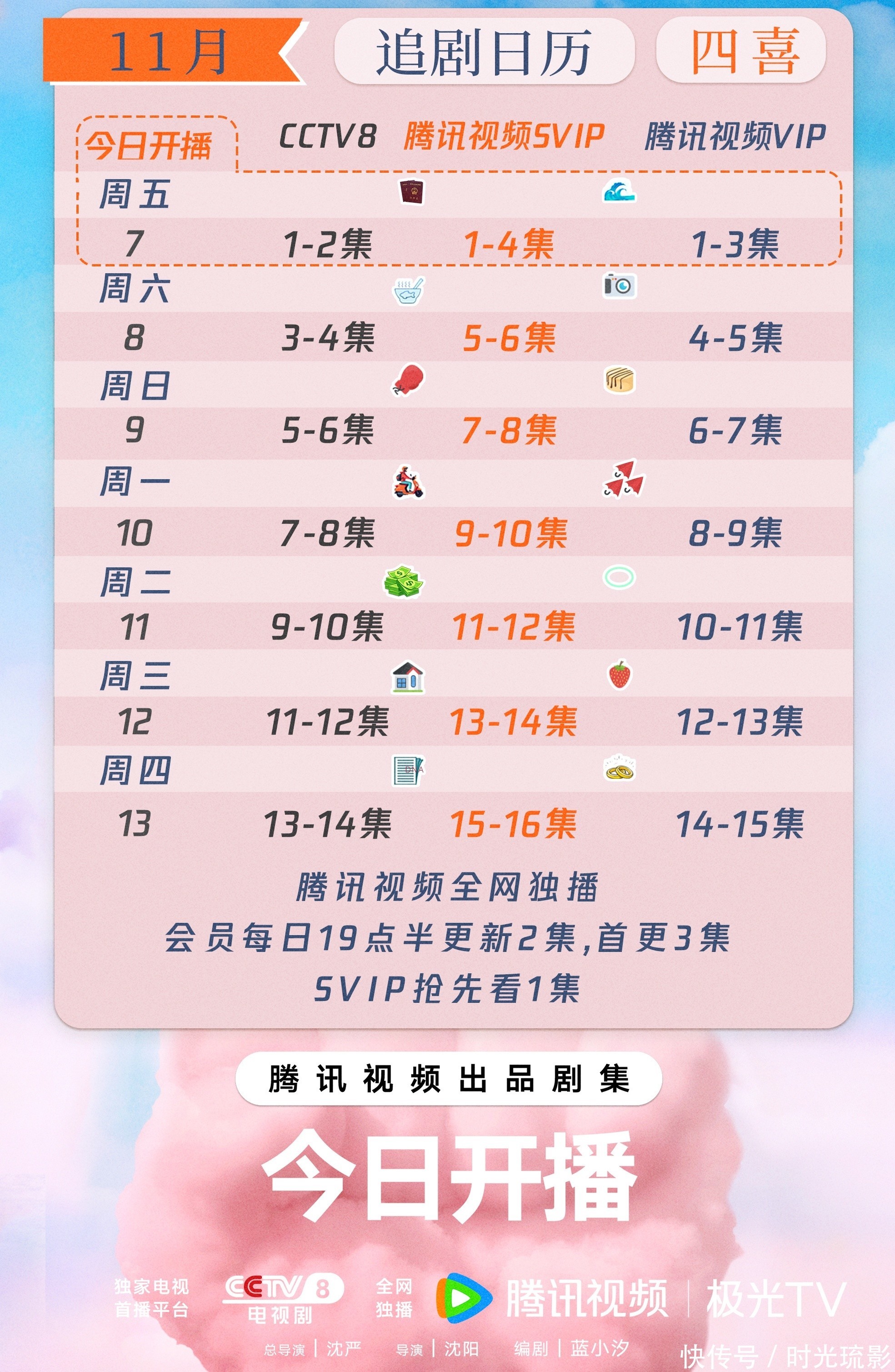 据悉,该剧将会在11月7日登陆央视八套黄金档开播,同时腾讯平台也会同步跟进。